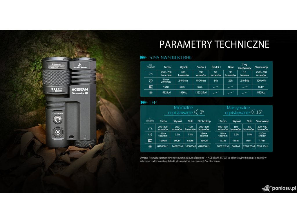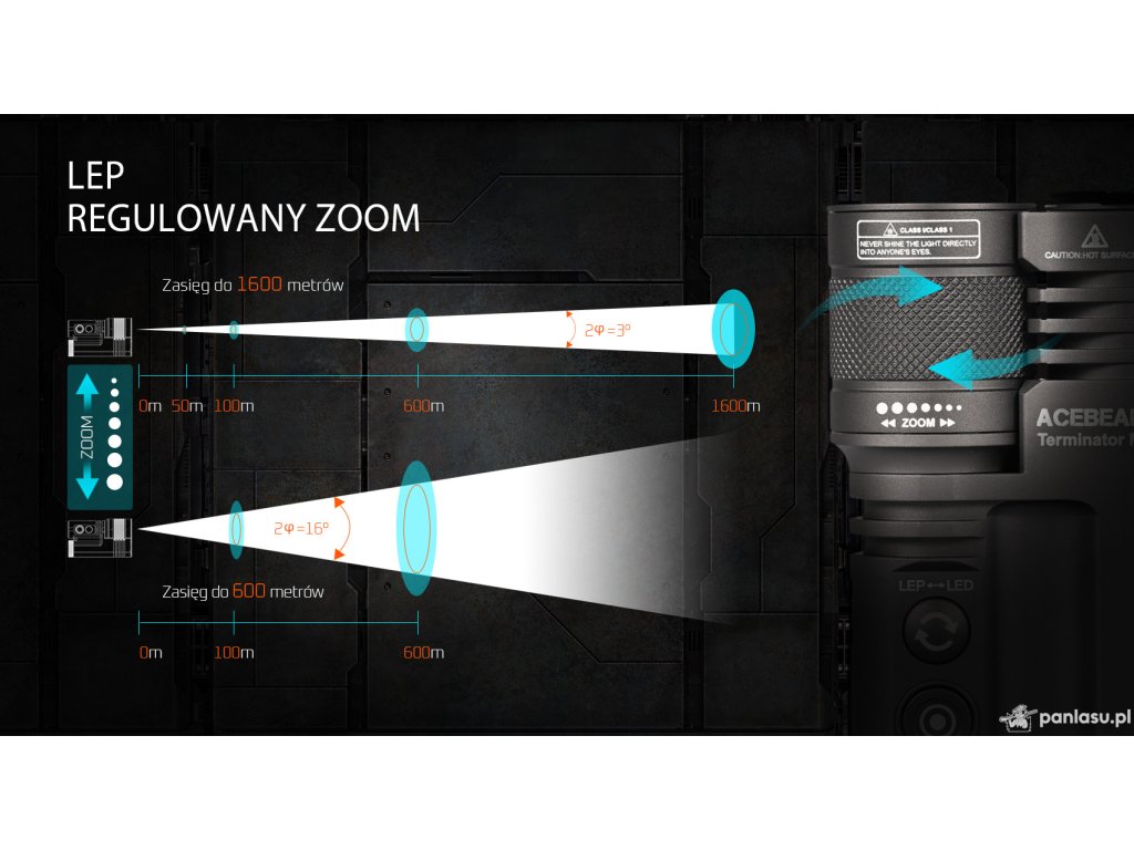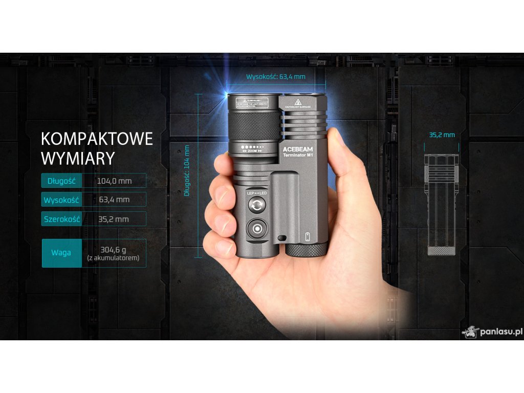 1x AceBeam Terminator M1, 2300 lm, CRI90, MAO - Latarka LEP i LED z zoomem