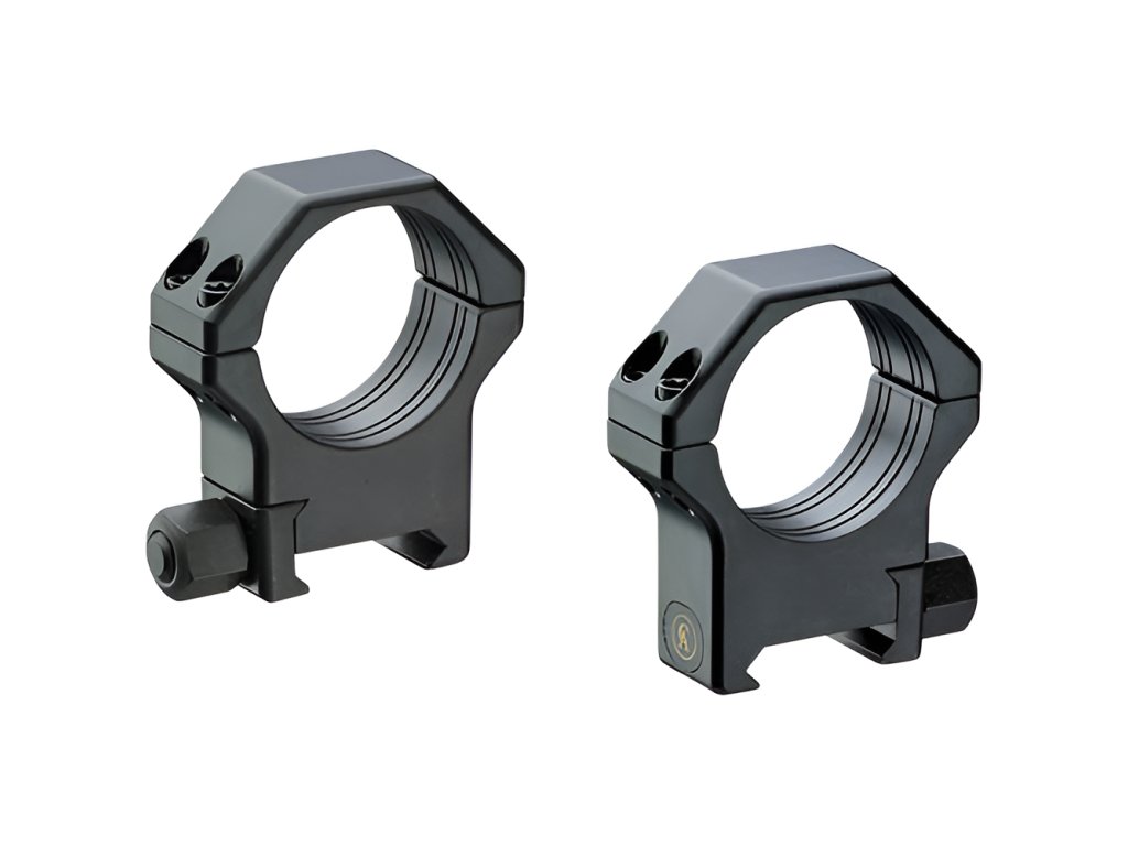 Para pierścieni o średnicy 30 mm z hartowanej stali do szyn Picatinny od renomowanego włoskiego producenta Contessa. Pierścienie z hartowanej stali zapewniają wyjątkową wytrzymałość, stabilność i gwarancję utrzymania punktu trafienia nawet po ponownym montażu. Na powierzchni styku znajduje się klin o szerokości 4,8 mm, który zapewnia absolutne unieruchomienie.