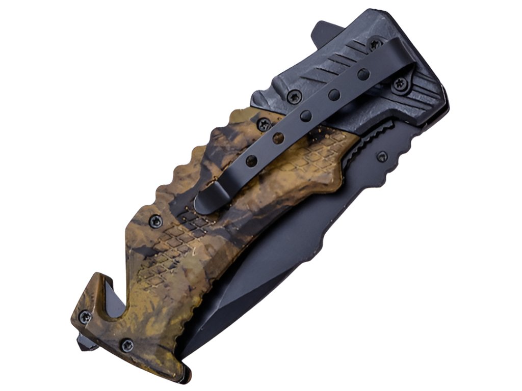 JKR to hiszpańska marka należąca do producenta Joker. Noże JKR wyróżniają się doskonałym stosunkiem ceny do jakości, oferując przystępne modele dla szerokiego grona użytkowników. JKR Nóż składany, 8,5 cm, kamuflaż, ABS to doskonały towarzysz codziennego użytku dzięki bardzo niskiej wadze i odpowiednio długiemu ostrzu. Nóż wyposażony jest w wewnętrzną blokadę chroniącą przed przypadkowym zamknięciem, okładziny z tworzywa w kamuflażu, a na końcu rękojeści znajduje się zbijak do szyb oraz bezpieczny przecinak. Prosta, solidna konstrukcja zapewnia wysoką jakość wykonania.