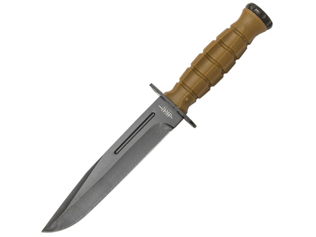 JKR to marka wywodząca się od hiszpańskiego producenta Joker. Noże JKR wyróżniają się doskonałym stosunkiem ceny do jakości, oferując przystępne noże dla szerokiego grona użytkowników. JKR nóż taktyczny, 17 cm, ABS, piaskowy to doskonały pomocnik przy realizacji wymagających zadań. Długie ostrze, solidna konstrukcja, a przede wszystkim szerokie ostrze czynią go prawdziwym nożem taktycznym. Antypoślizgowa rękojeść z utwardzonego ABS doskonale leży w dłoni, a jelec zapobiega niepożądanemu kontaktowi dłoni z ostrzem. Do noża dołączona jest pochwa z ABS, którą można przymocować do pasa.