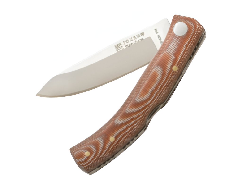 Hiszpański producent Joker to tradycyjny producent noży z tradycyjnej kuźni noży - miasta Albacete. Joker Ranchera - Nóż składany, 8 cm, micarta, ceglany jest częścią serii noży składanych, które są doskonałym towarzyszem codziennego noszenia, zwłaszcza dzięki bardzo niskiej wadze i wystarczająco długiemu ostrzu. Nóż dodatkowo wyposażony jest w zewnętrzną blokadę przed przypadkowym zamknięciem, skórzany sznurek i rękojeść z micarty w ceglanej barwie. Wysoce odporna konstrukcja podkreślona jest bardzo wysoką jakością wykonania.
